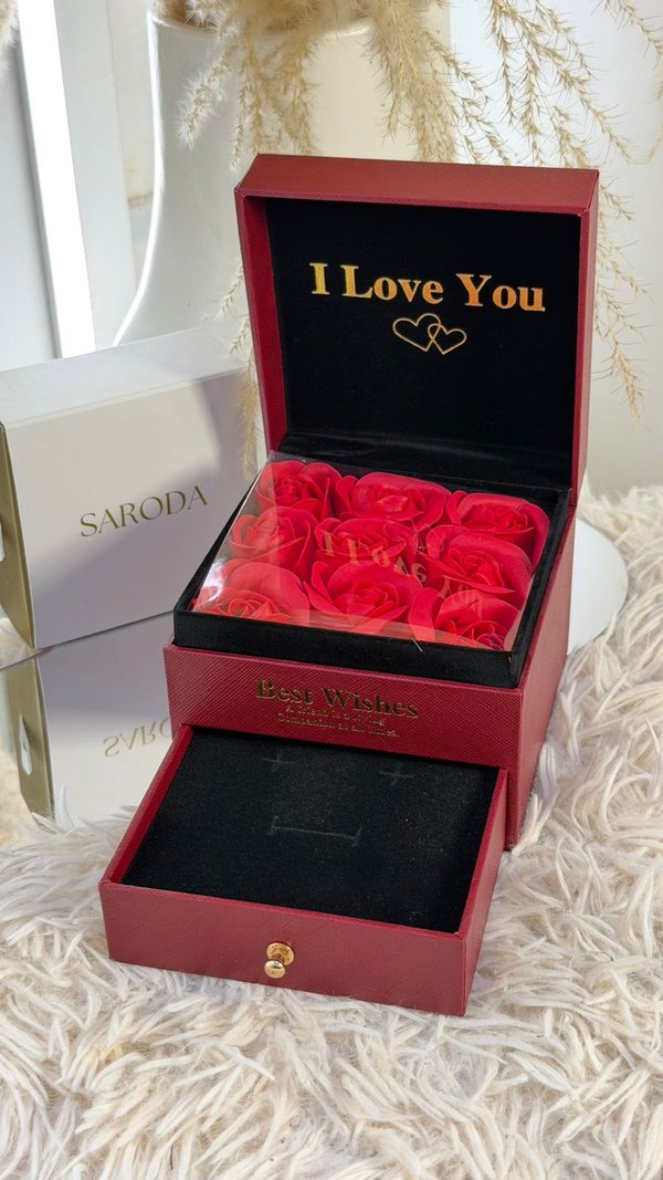 Cajita de doble piso con 9 rosas con porta accesorio